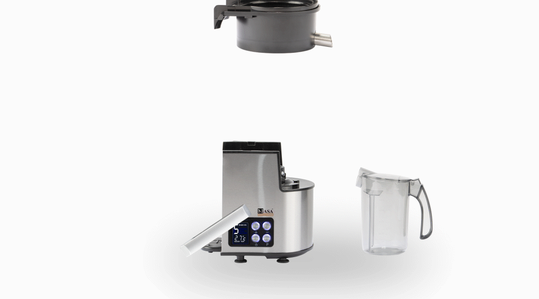 یکی از ویژگیهای متمایز کننده آبمیوه گیری ناسا الکتریک NS-945 وجود کنترل پنل دیجیتالی بر روی بدنه آن است. نمایشگر دیجیتالی سرعت انتخابی و دمای داخلی دستگاه و حتی مواد اولیهای که با آن سرعت تناسب دارند را نمایش میدهد. همچنین چهار دکمه فیزیکی نیز در کنار نمایشگر وجود دارند، که برای روشن کردن و کاهش و افزایش سرعت و همچنین اعمال عملکرد پالس به کار میروند. در ساخت این محصول از دو جنس پر کاربرد پلاستیک AS و استیل ضد زنگ استفاده شده، که از کیفیت و مقاومت بالایی بهره میبرد.