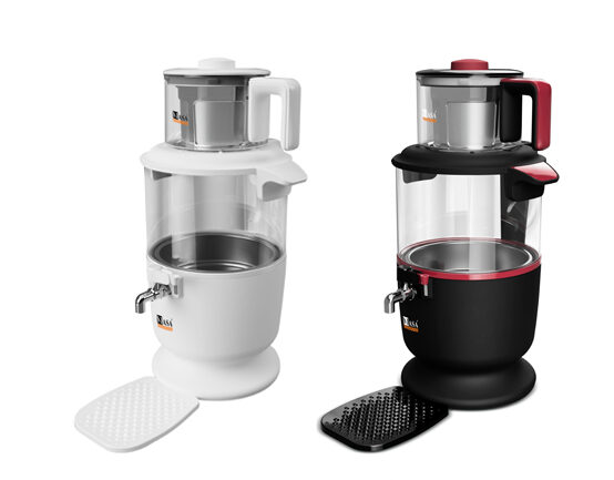 یک شیر خروجی از جنس استیل بر روی بدنه کتری قرار گرفته است، که بصورت دستی باز و بسته می‌شود. این شیر از نوع ضد چکه بوده و با کمک مهار کننده می‌توان آن را باز و بسته نمود. درپوش و دسته‌هایی که برای این کتری در نظر گرفته شده‌اند، از جنس پلاستیک با کیفیت می‌باشند. دستگیره‌های تعبیه شده حمل و جابجایی چای ساز را راحت کرده‌اند. درپوش نیز امکان قرار گیری قوری بر بالای کتری را فراهم آورده است. پایه سیلیکونی که در زیر سماور قرار گرفته از نوع ضد لغزش بوده و مانع از لغزش چای ساز می‌شود. همچنین چراغ نشانگری که برای چای ساز طراحی شده، شما را از وضعیت خاموش یا روشن بودن دستگاه مطلع خواهد ساخت.