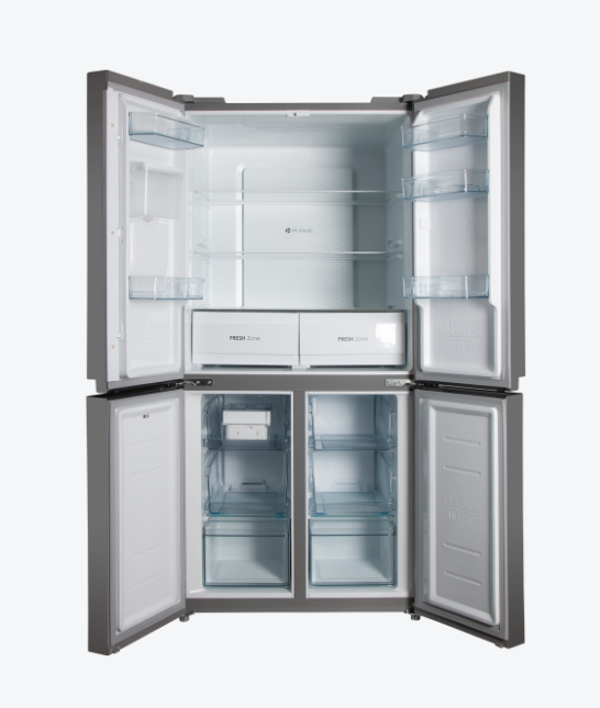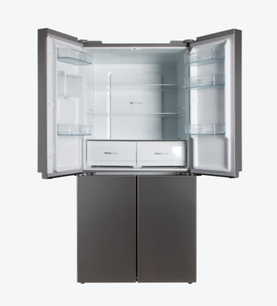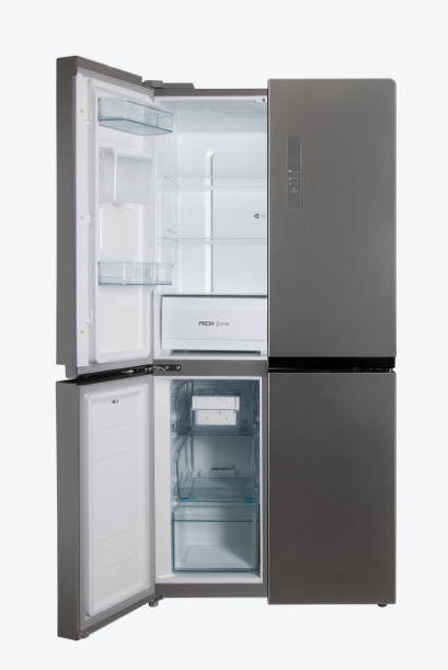 یخچال و فریزر چهار درب 530 با حجم کل 530 لیتر و ابعاد 180 * 76 * 84 سانتیمتر (ارتفاع * عمق * عرض) فضای کافی و سازمانیافتهای را برای نگهداری مواد غذایی شما فراهم میکند. 3 طبقه و 2 کشو در یخچال به همراه 6 کشو در فریزر، به شما این امکان را میدهد که همه چیز را مرتب و در دسترس داشته باشید. طبقات شیشهای نشکن، مقاومت و دوام بالایی دارند و سیستم روشنایی LED کم مصرف، فضای داخلی را روشن و دلنشین میکند.